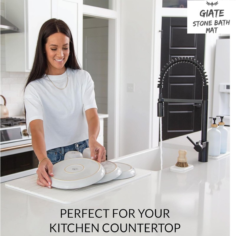 - Simple and Elegant Design - Introducing the Giate stone bathmat, meticulously crafted with a unique pattern carved into the surface, facilitating swift water dispersal and absorption for enhanced functionality. Additionally, we offer a non-slip mat designed to be placed beneath the diatomite stone bath mat, ensuring stable placement and preventing slippage on wet surfaces.