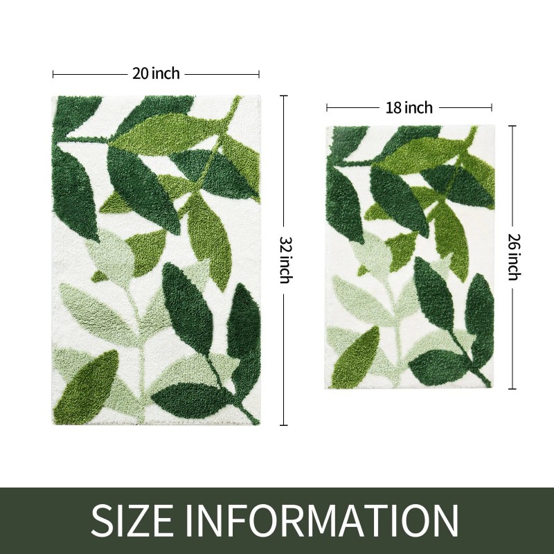 Gibelle Green Bathroom Rug Set 2 Piece Non-Slip Strong Water Absorbent Plush Mi