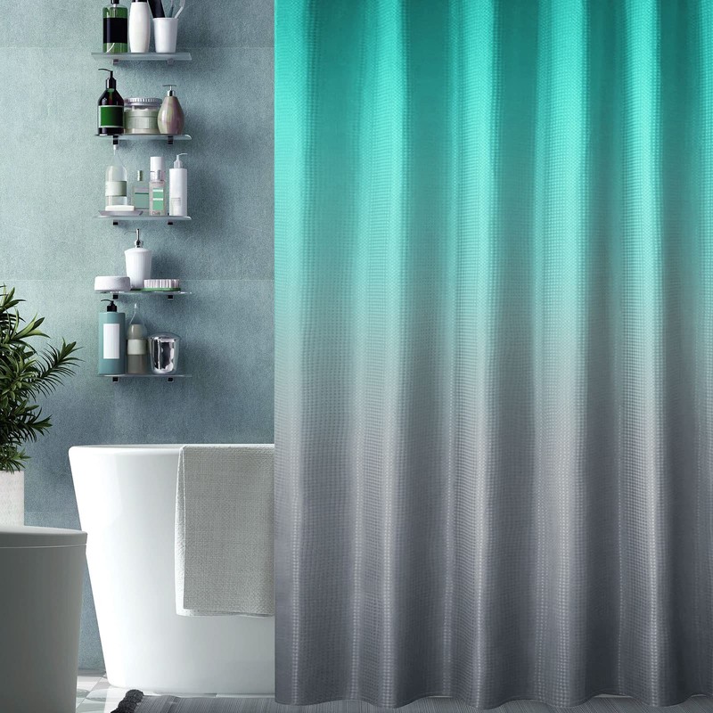 Gibelle Ombre Shower Curtain, Teal Grey Gradient Fabric Shower Curtain, Waffle Weave Textured Bathroom Curtains Shower Set with Hooks, Water Repellent and Machine Washable, 72 x 72