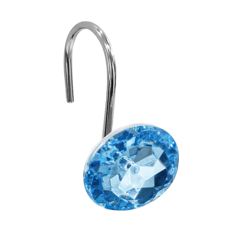 Gibelle Shower Curtain Hooks, Diamond Shaped Shower Curtain Rings Hooks for Bathroom Curtains Rod, Acrylic Decorative Rhinestones Bling Rolling Bathroom Accessories Set of 12, Blue