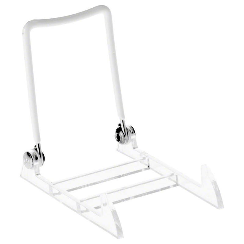 GIBSON HOLDERS 1PL Adjustable Wire & Acrylic Easels, 2.75" W x 3.5" H with 3" Ledge, White/Clear, Pack of 6
