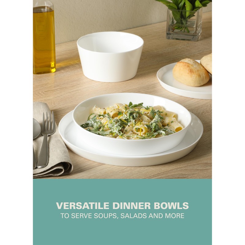 - ALL-PURPOSE DINNER BOWLS: Popular for their multi-functional design, these dinner bowls feature a spacious base to serve meat and vegetables, The low, curved sides make them ideal to hold soupy meals or anything with sauces like pastas, stews, and more.