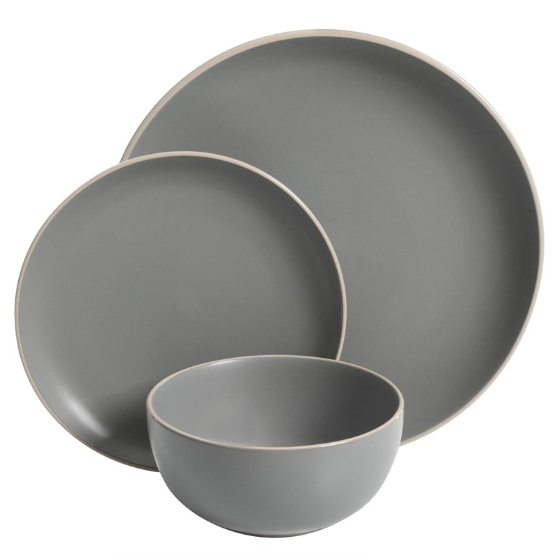 Gibson Home Rockaway 12-Piece Dinnerware Set Service for 4, Grey Matte -