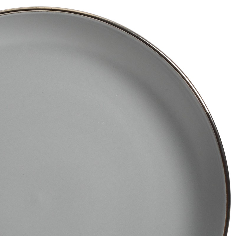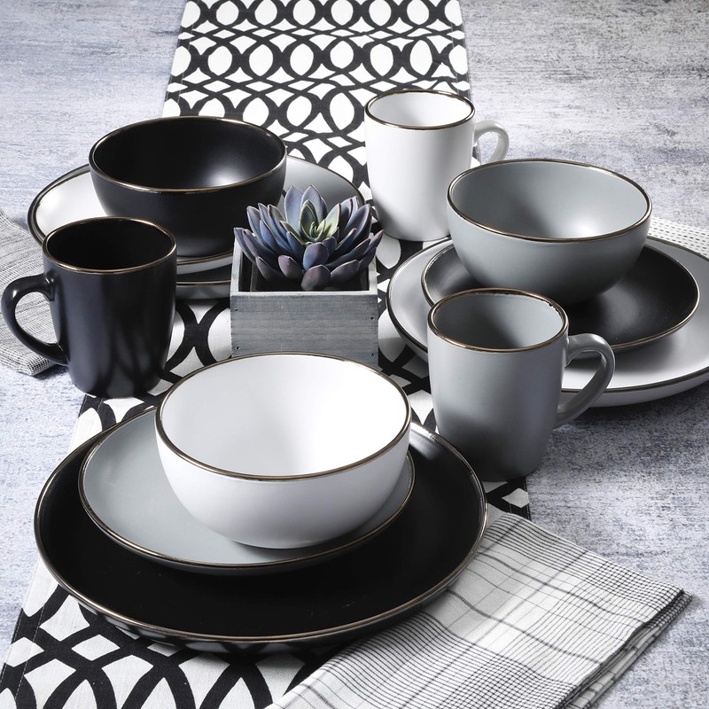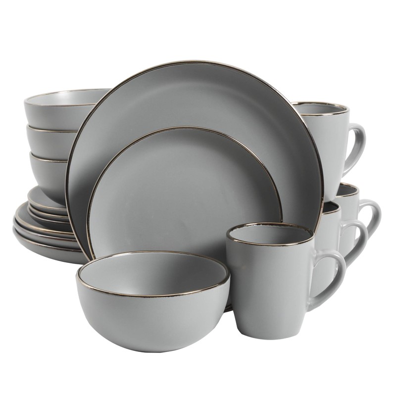 Gibson Home Rockaway Round Dinnerware, Service for 4 (16pcs), Grey/Gold Rim