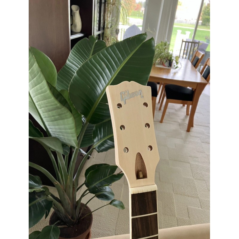 FREE SHIPPING IN THE CONTINENTAL UNITED STATES ONLYSo if you are doing a restoration , or building a replacement neck, or repairing a broken headstock, and you need a select piece of holly, this is it. You can place logo and drill the correct sizing for your tuners. Be sure to specify 57 Gold Top MOP placement or 58-60 placement when you order !