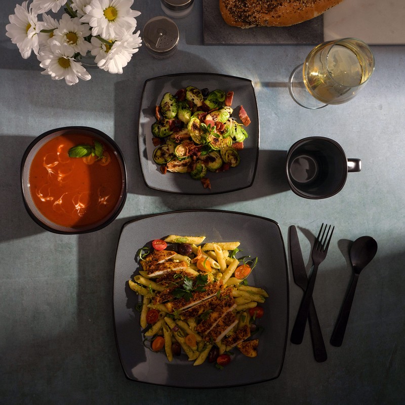 - CARE INSTRUCTIONS: beautiful grey and black dishes that are also dishwasher and microwave safe