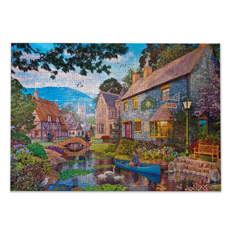 - 🧩 RIVERSIDE RETREAT: This beautiful illustration by artist Dominic Davison captures the simple joy of stopping for a brew and a slice of cake at a quaint tea room by the water. Time to set the oars down and soak in the delights of a riverside retreat. Bask in the charm of thatch roofed cottages and distant rolling hillsides as you piece together this heartwarming puzzle.