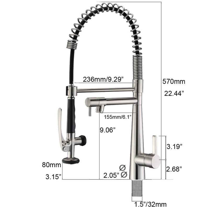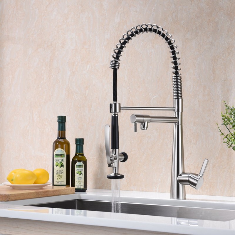 - Single Handle Design: this pull down kitchen faucet can swivel around 360 degrees for full sink access, both the sprayer and pot filler spout can 360 degree swivel.