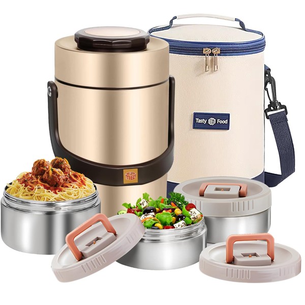 Gicklov 67oz Upgraded Thermos for Hot Food, 3-Layer Stackable Food Thermos, Soup Thermos Jar with Insulated Bag, Ideal for Office, Outdoor Meals, and Various Occasions (67 oz Silver)