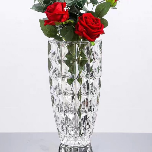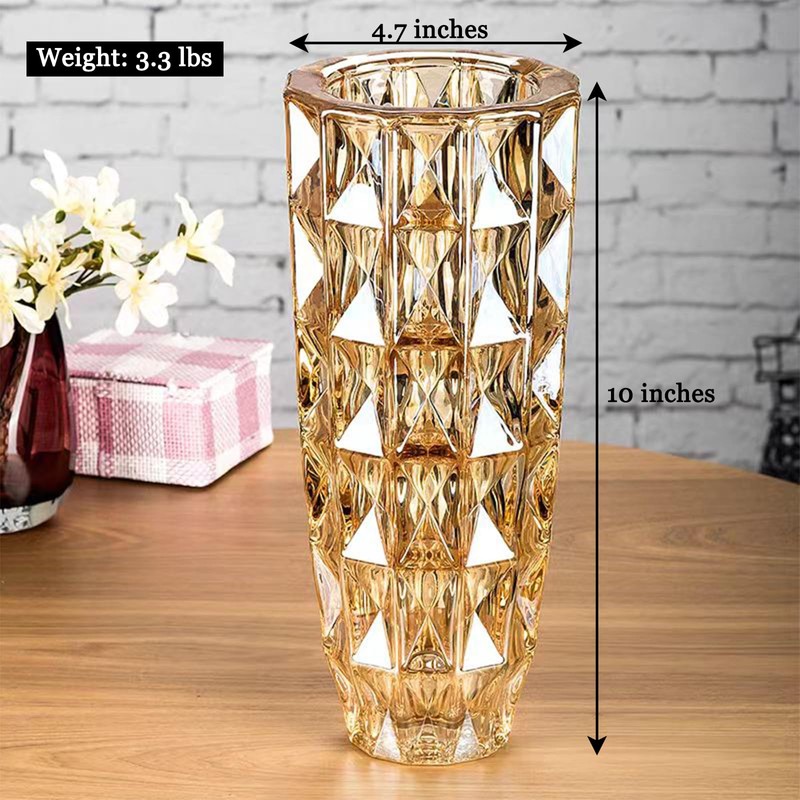 GIDARY Flower Vase,Tall Vase,Large Vase, Clear Glass Vase, H 10 inch,Weighs 3.3 LB,Heavy Diamond Check Pattern Crystal Vase,for Home Decor,Bookshelf Decor,Flower Vase for Centerpieces (Clear)