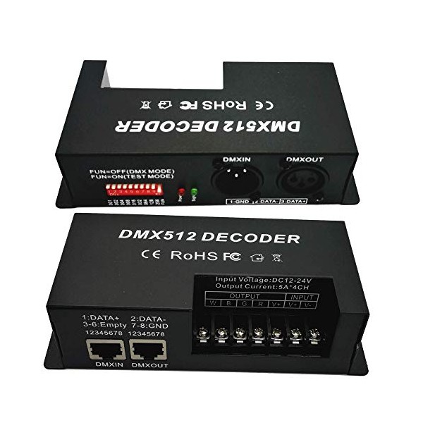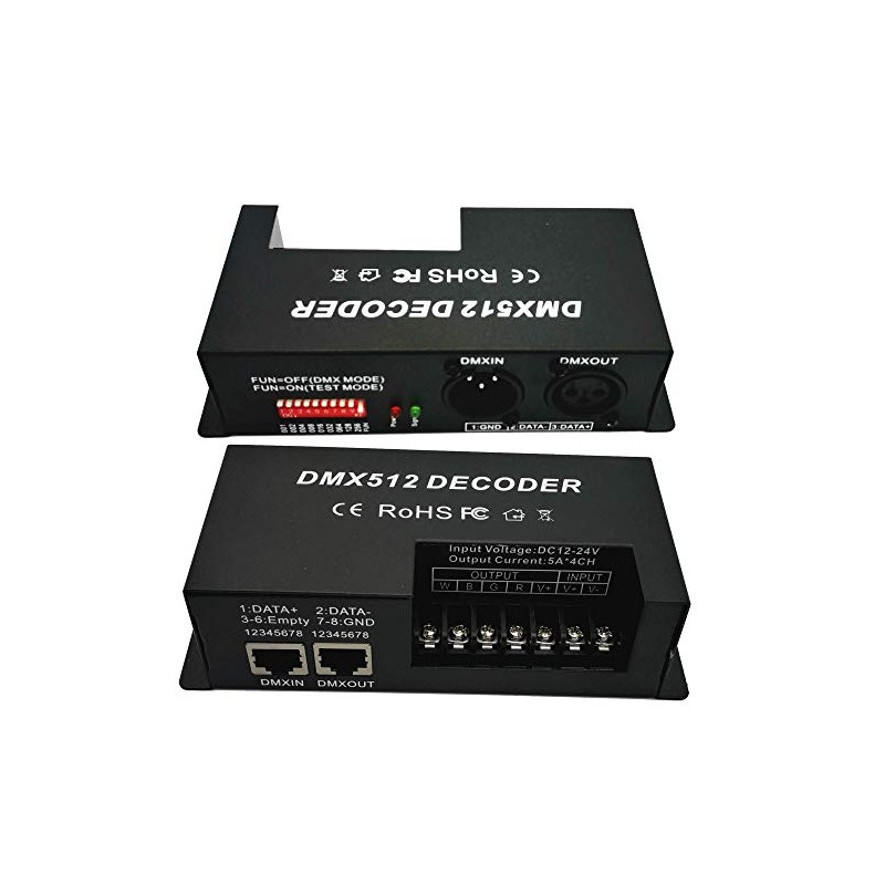 GIDERWEL 4 Channel DMX Decoder RGBW PWM DMX512 Dimmer Driver RGBW LED Strip Light Controller Input 12V-24V DC