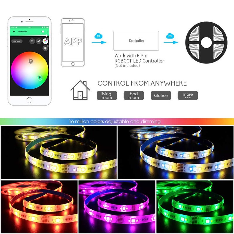 - 💡Super Brightness mixed color 5 Channel 6 wire16.4ft flexible LED RGB+CCT strip light with 450 LEDs 5050 SMD RGB Color. It will create an awesome visual effect for any occasion.