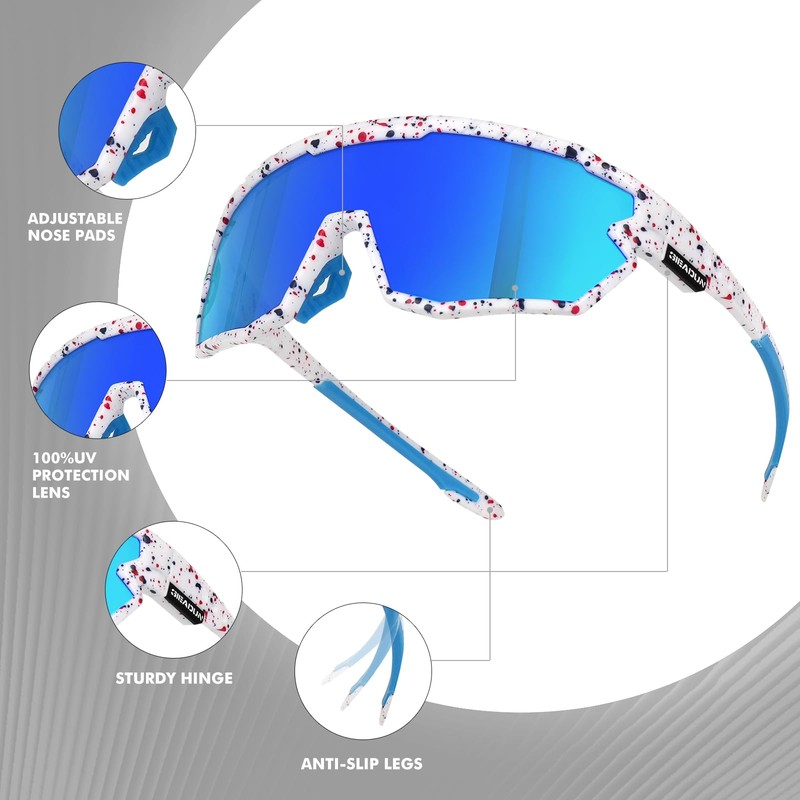 GIEADUN Polarized Glasses Kids Youth Baseball Sunglasses Adult Men Women Cycling Goggles with 3 lenses,Fishing,Ski Running Golf (White blue, Adult)
