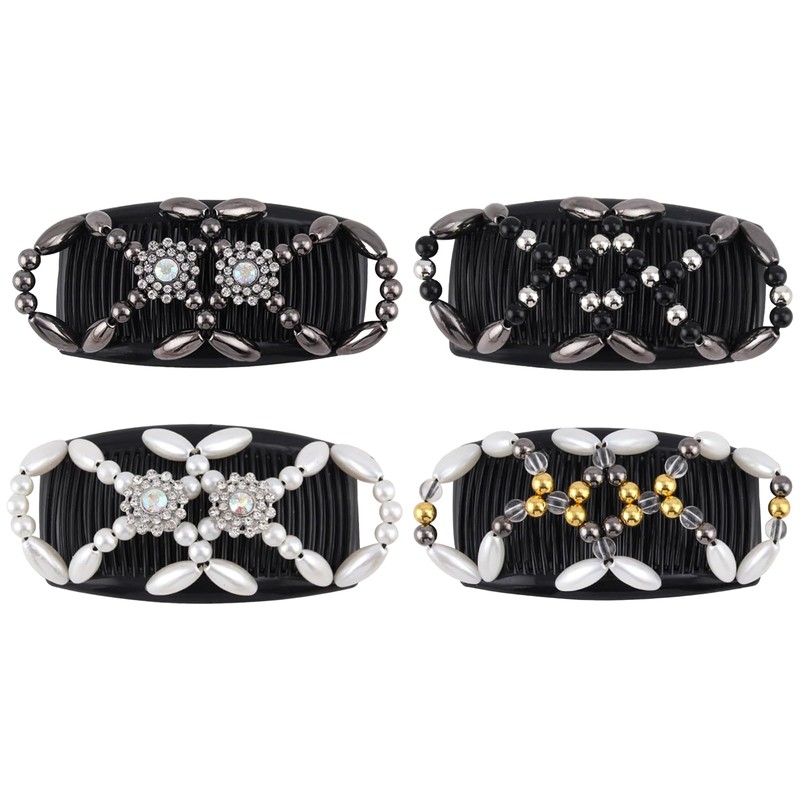 GIEEU Magic Beads Hair Comb, 4 PCS Double Side Combs Clips, Durable Elastic Hair Accessories for Women, DIY Styling for Daily & Party
