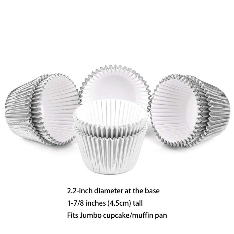 - The 2.2-inch base diameter (5.5 centimeters) x 1-7/8"(4.5cm) tall silver foil baking cups fit jumbo cupcake/muffin pans, making pan cleanup easy