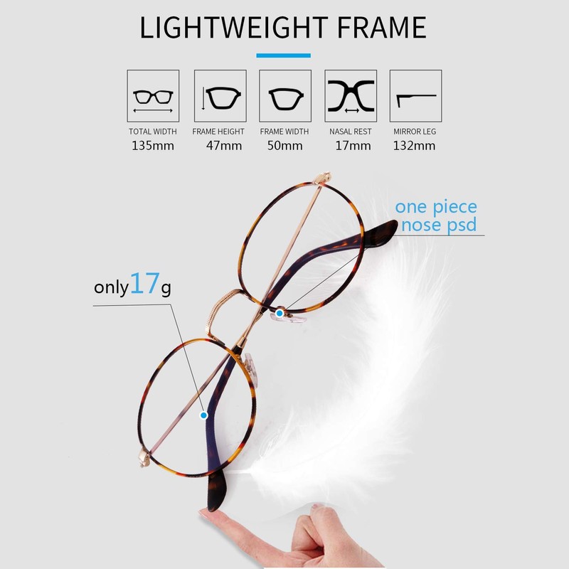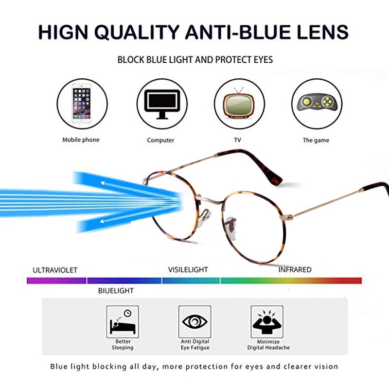 • These Round Metal Frame Blue Lght Blocking Glasses are made of Reinforced metal frames, Soft silicone nose pads, and durable spring hinges
