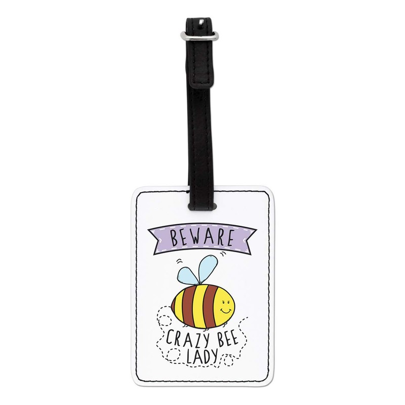 Gift Base Beware Crazy Bee Lady Visual Luggage Tag with Black Strap