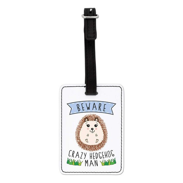 Gift Base Beware Crazy Hedgehog Man Visual Luggage Tag with Black Strap