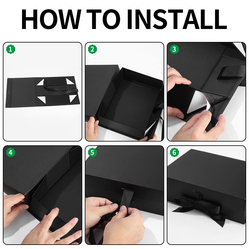 - EASY TO USE Foldable flat construction that assembles into a fully rigid and luxurious quality box in seconds. This luxurious black gift box will enhance your gift and transform it into a unique presentation.