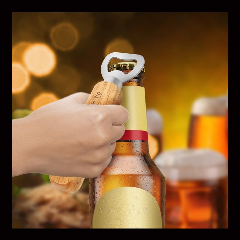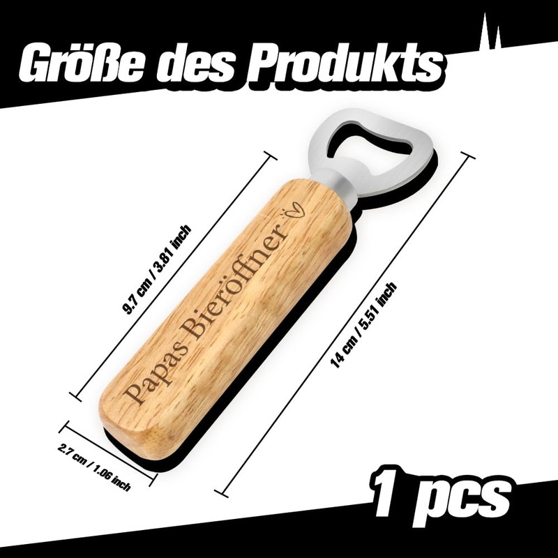 - Suitable size: the bottle opener has the dimensions 14 cm x 4 cm x 2 cm and is therefore easy to transport; the wooden handle is 10 cm long, which makes it comfortable in the hand and you can open all types of bottle caps more easily. Gift for father