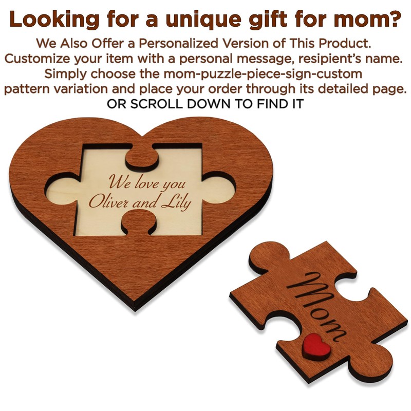 Gift for Mom Birthday Unique - Engraved Mothers Day Gift Idea from Daughter Son, Wooden Mom Puzzle Piece Gift Sign, You are the Piece that Holds Us Together, Mother Day Plaque from Kids, Children