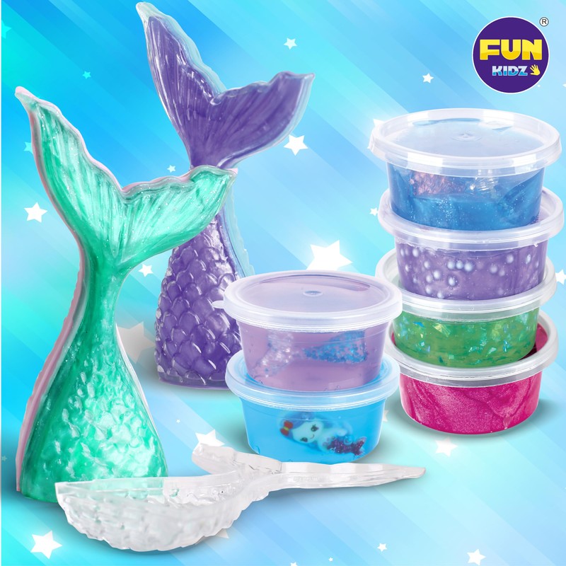 - [ULTIMATE KIDS SLIME]- FunKidz mermaid slime pack includes all things you need to create sparkle sugar ocean slime, pearl slime, vanilla scented slime, butter slime cloud slime.