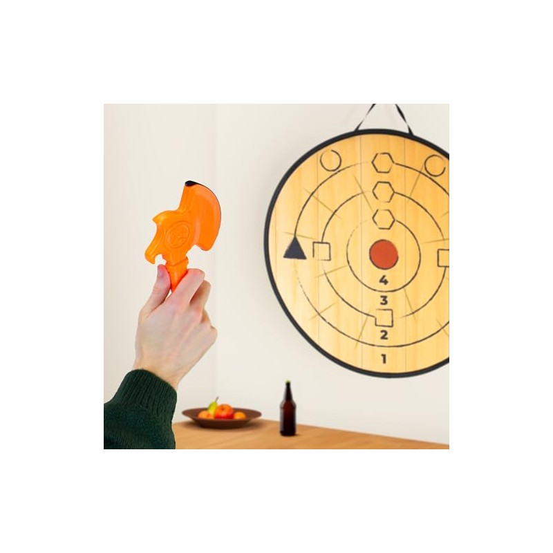 - Complete Set: Features a pop out target board, 3 axes, 1 dart, and 15 coasters, providing everything you need for competitive fun. Full, easy to follow instructions are included with simple quick set-up so the fun can start straight away