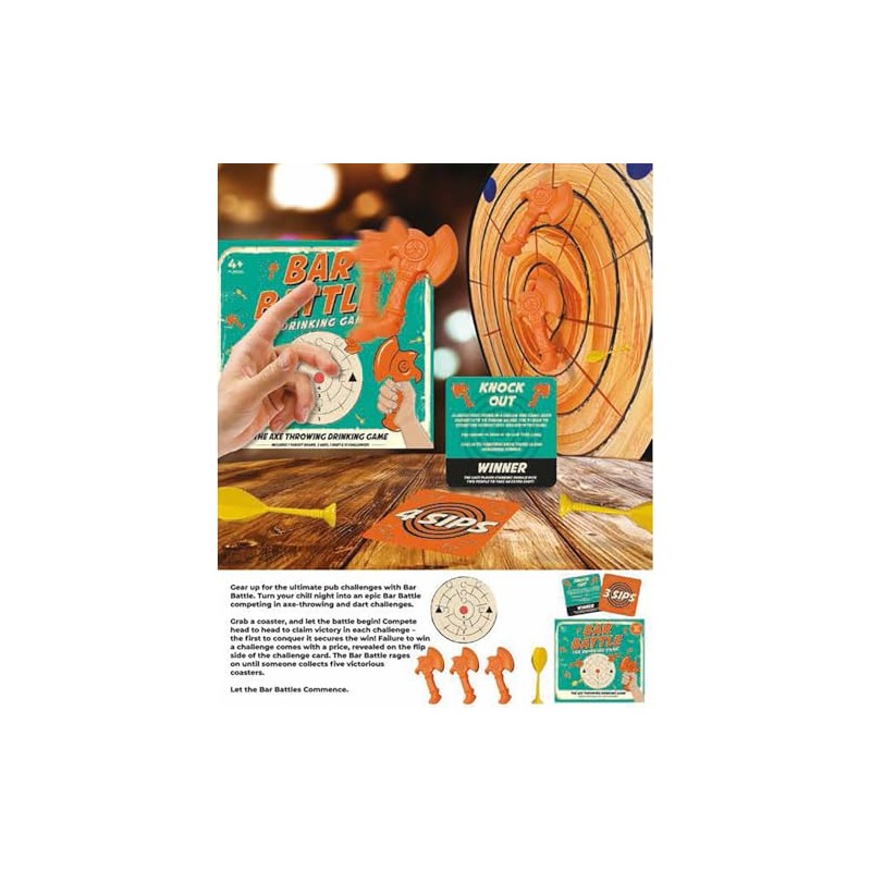 Gift Republic Bar Battles – The Ultimate Axe-Throwing Drinking Game | Fun Party Game with Target Board, Axes, Dart & Challenge Coasters | Perfect for Adults & Game Nights