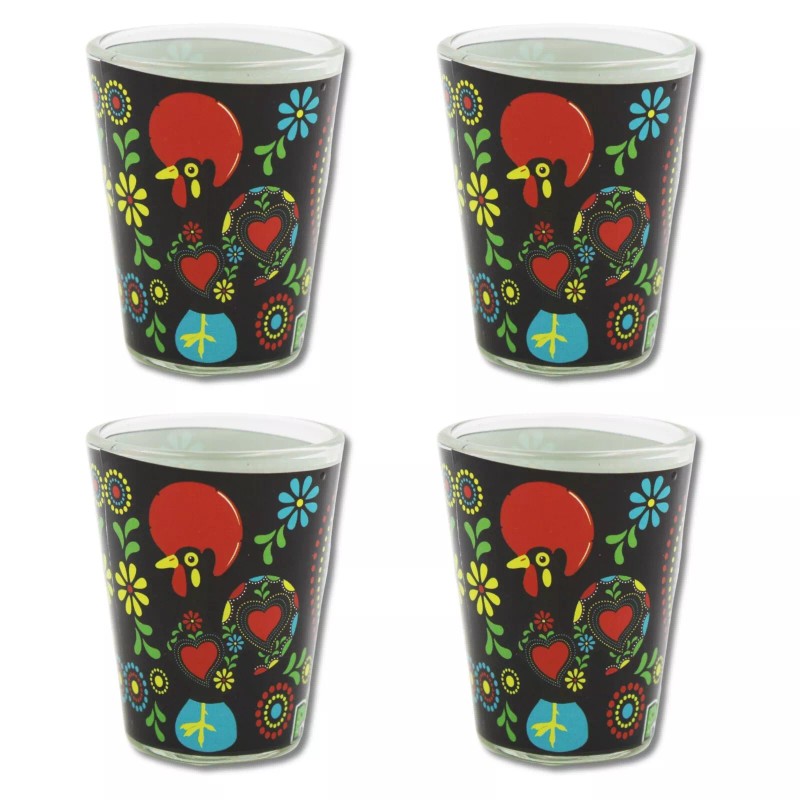 Gift Souvenirs Traditional Portuguese Rooster Shot Glasses Galo Barcelos Design, Set of 4