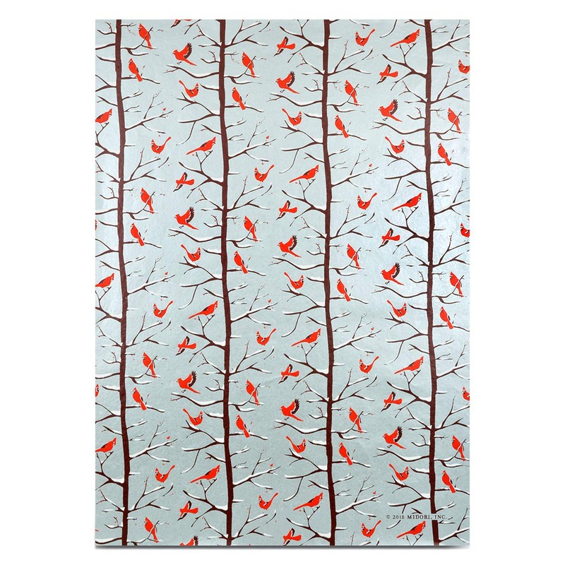 Gift Wrap - Winter Tree - Silver/Brown and White Red Metallic