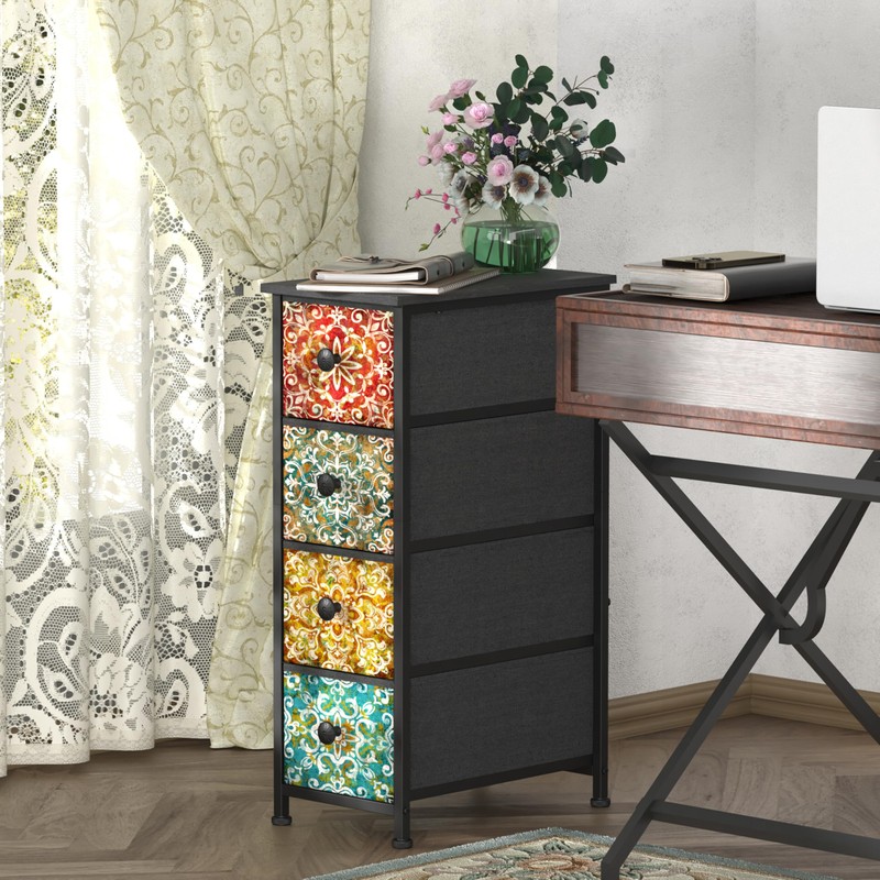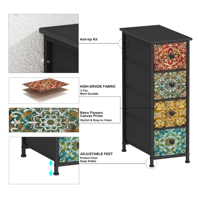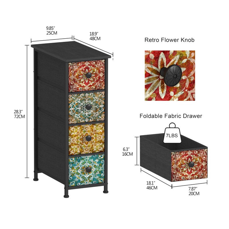 - ORIGIN Design Mandala Fabric Drawers Dresser The retro flower pattern on each drawer makes it a stand-out piece of furniture that is sure to catch the eye of anyone who enters the room. It also adds a touch of charm and elegance to your room