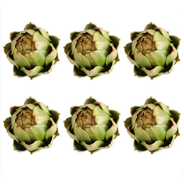 GiftHow Large Green Artificial Artichokes Fruits - Fake Fruits and Realistic Vegetables for Kitchen Bowl and Vase Filler Decorations (6)