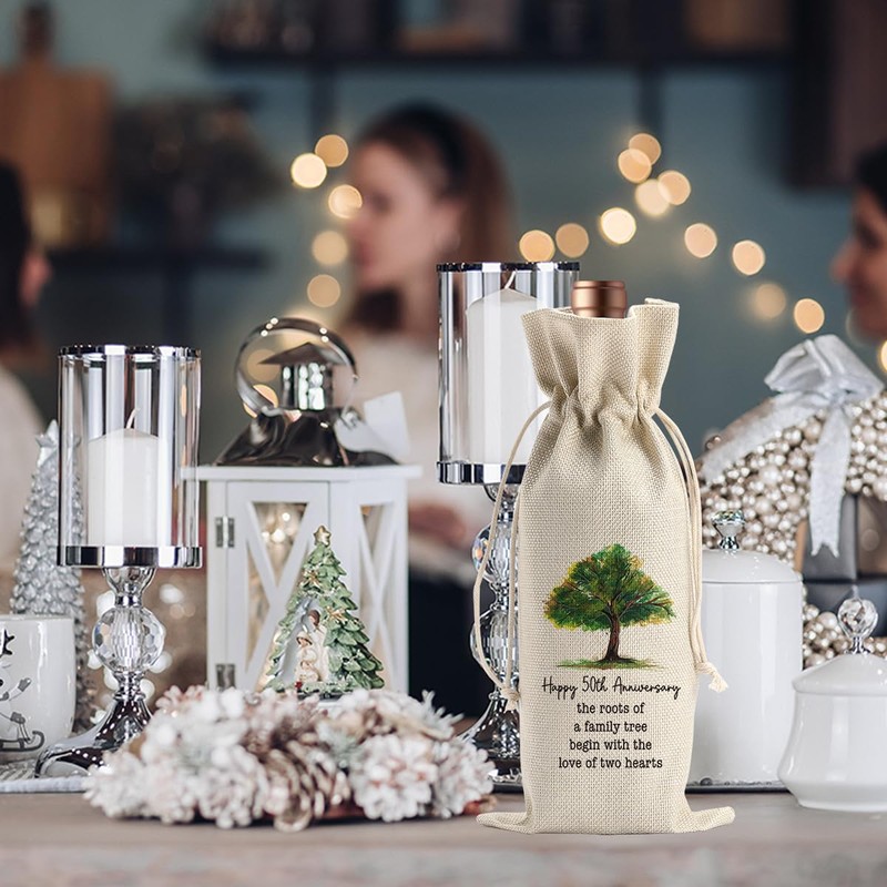 Gifts for 50th Anniversary for Couple Parents Husband Wife Vow Renewal Golden Wedding Anniversary Wine Gift Bag