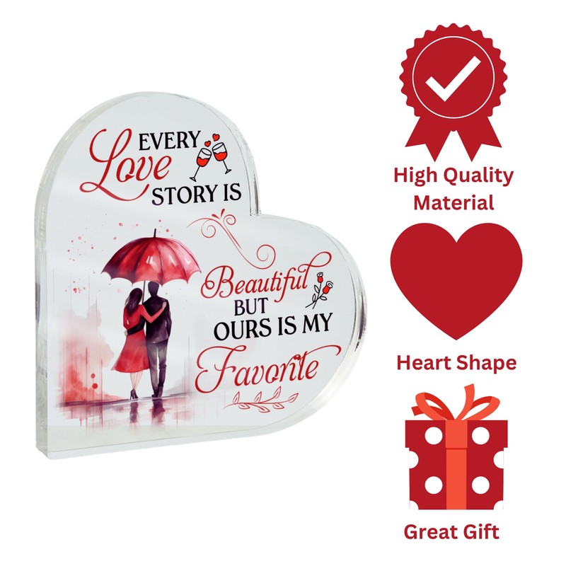 Gifts For Girlfriend Birthday Gifts for Girlfriend Romantic Gifts for Her Printed Heart Shaped Acrylic Plaque Keepsake Girlfriend Gifts (Every Love Story)