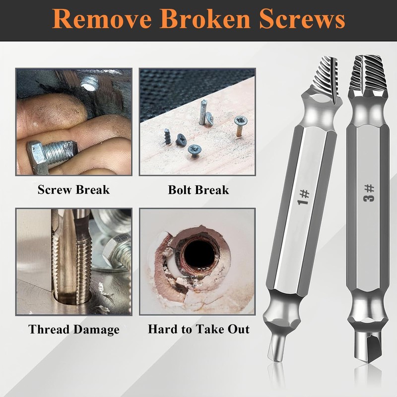 • Versatile Application: Works with any drill on any screw or bolt, easily handles most problems such as removing rusty, broken and stripped screws and bolts, suitable for home repairs, car maintenance, and construction projects and more