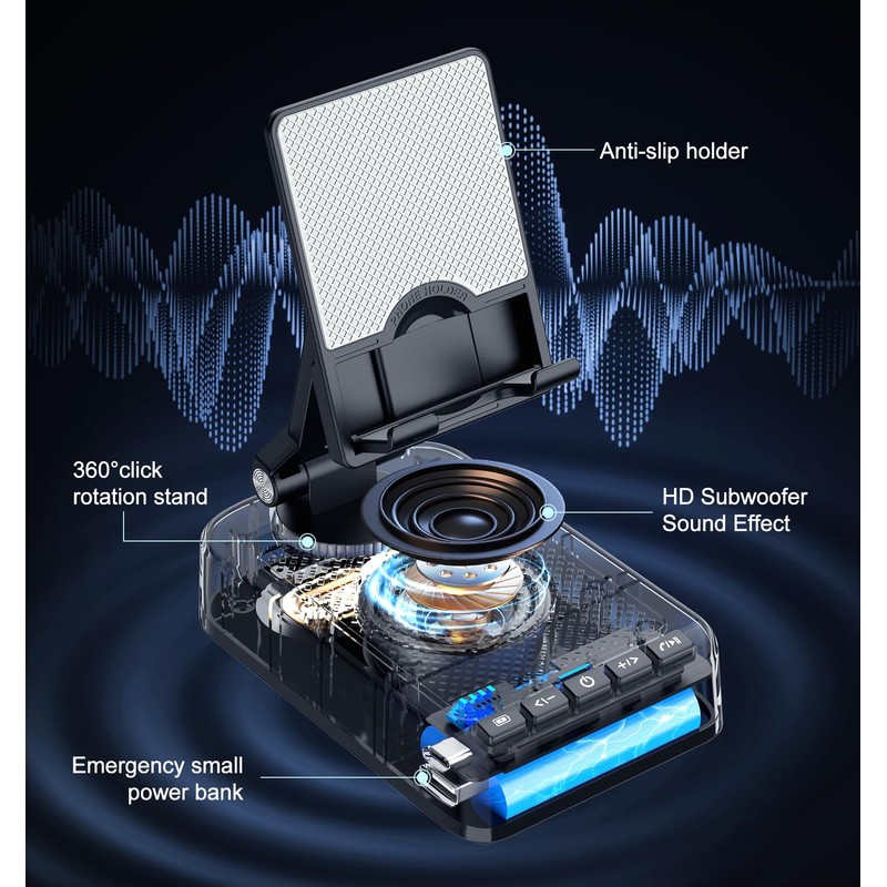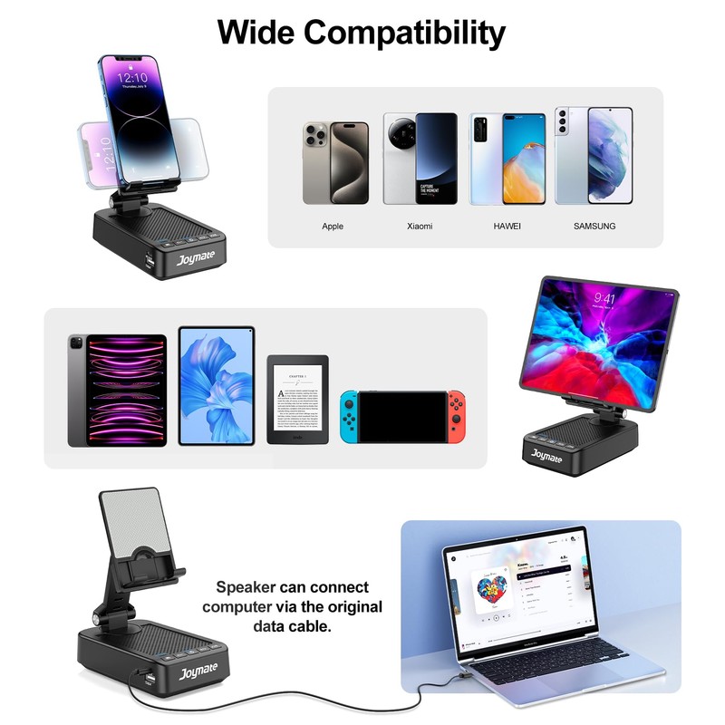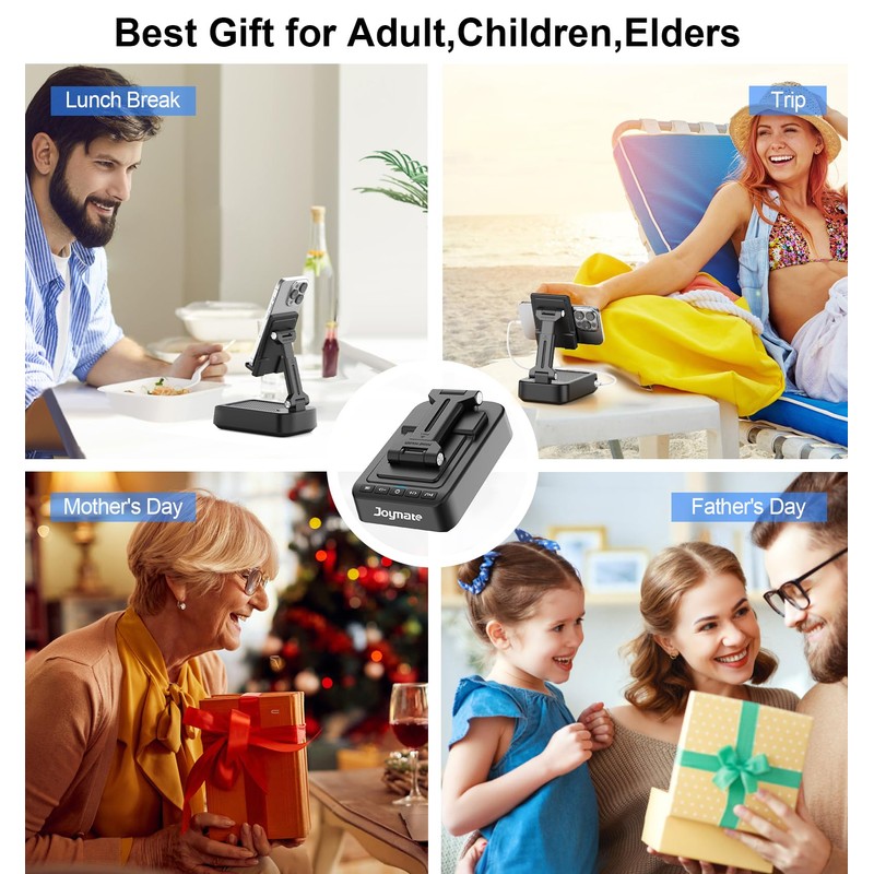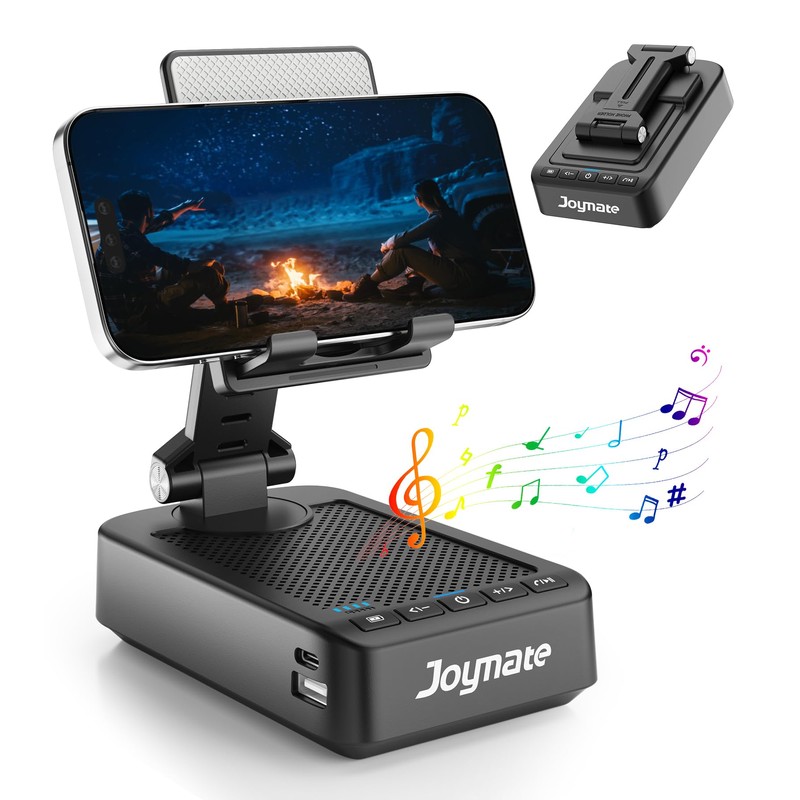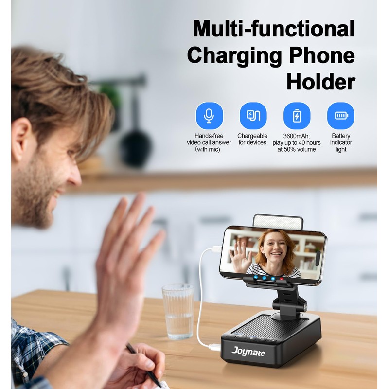 Joymate Gifts for Men Women, Phone Stand with Bluetooth Speaker and Charging Function 360° Rotable Angel Adjustable Cell Phone Holder with HD Stereo Sound Fits All Phones,Tablet (Black)