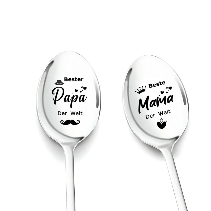 Gifts for Mum Dad Pack of 2 Coffee Spoons with Engraving - Beste Mama und Papa Der Welt, Christmas, Birthday, Anniversary Gift for Mum, Dad, Love Gifts for Him