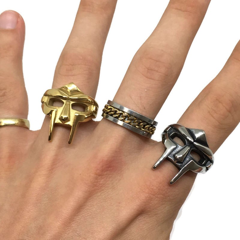Gifts From The Crypt MF DOOM Inspired Mask Ring | Stainless Steel Silver Gladiator Unisex Statement Band Hip Hop Rapper Dr (Gold, 7)