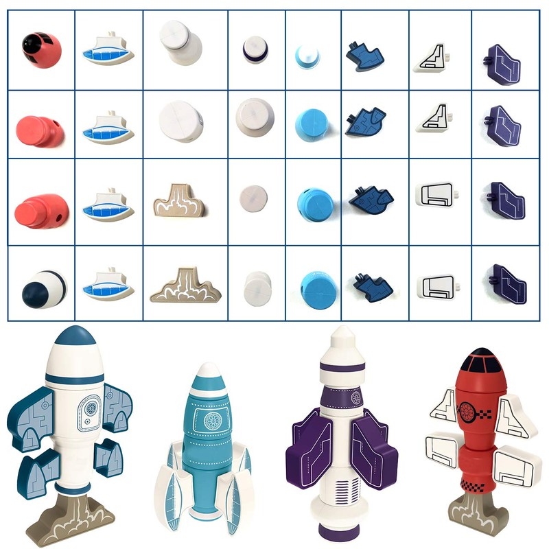 All of our magnetic rockets stacking toys are made from Non-Toxic and durable ABS plastic material, strong magnet, it is super easy to clean, mix and match robot apart. The playset helps to develop shape recognition, creativity and imagination, motor skills, storytelling, operational skills, thinking and problem-solving skills, architecture, and design capabilities in your little ones. The magnetic toys intended for ages 3 and up.