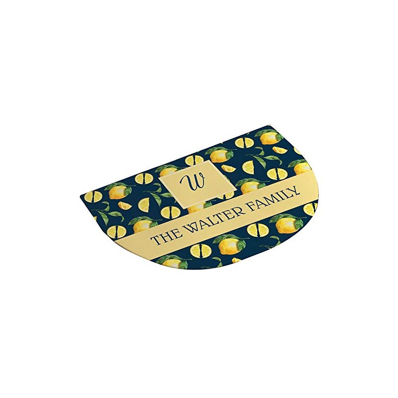GiftsForYouNow Personalized Half Moon Lemon Pattern Doormat- Navy