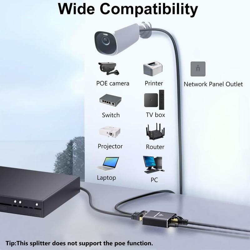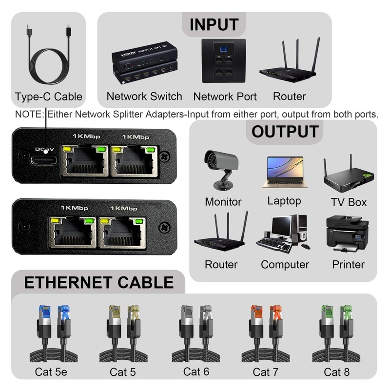 - Wide Range of Compatibility: The RJ45 8P8C LAN Internet Splitter connection extender works with Cat8 Cat7 Cat6 Cat5 Cat5e Network Ethernet Cable and may be used with ADSL, hubs, switches, TVs, set-top boxes, routers, wireless devices, computers, etc