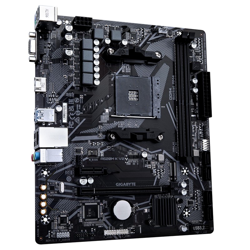 Gigabyte A520M K V2 Motherboard - Supports AMD Ryzen 5000 Series AM4 CPUs, up to 5100MHz DDR4 (OC), PCIe Gen3 x4 M.2, GbE LAN, USB 3.2 Gen 1