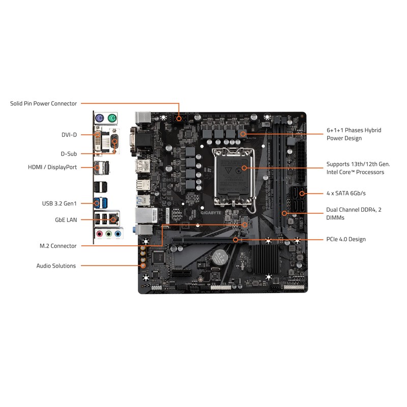 GIGABYTE H610M S2H V2 DDR4 (H610/ Intel/LGA 1700/ Micro ATX/ DDR4/ Single M.2/ PCIe 4.0/ USB 3.2 Gen1/ Realtek GbE LAN/Motherboard)