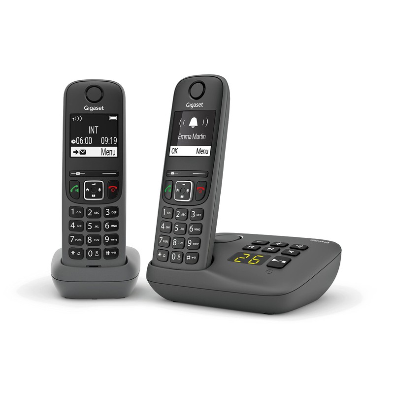 Gigaset A695A Duo - Cordless Phone with Answering Machine, 2 Handsets with Large Backlit Display for Ultra Readable Display, Call Lock Function - Grey