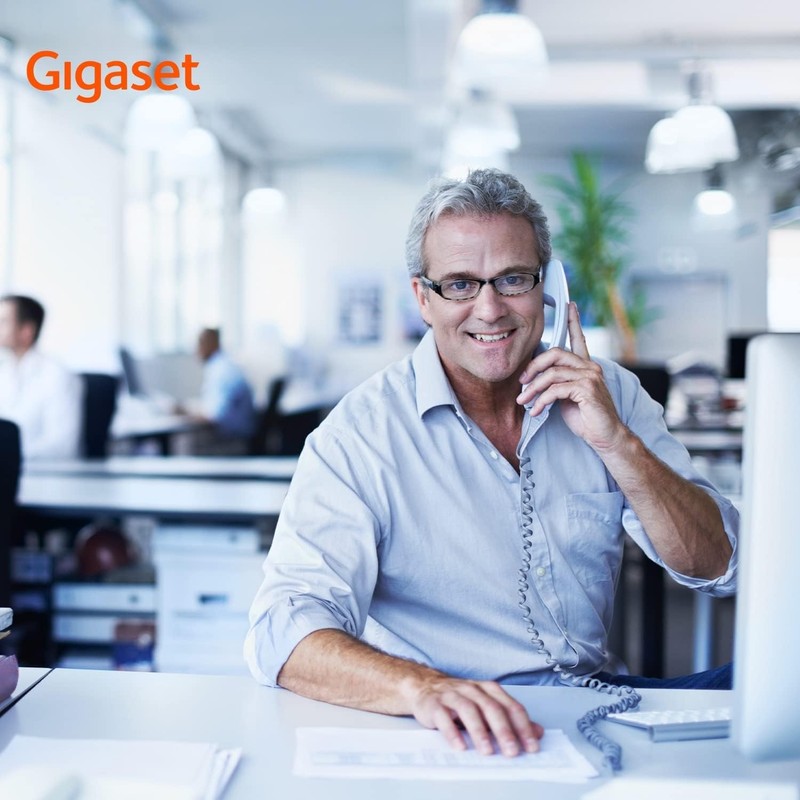 - Ideal for office or home – with elastic cable for more freedom of movement when making calls – adjustable between multi-frequency dialing or pulse selection procedure – with 3 adjustable ringtones and hearing aid compatible. Only compatible in Germany - more information on the Gigaset homepage.