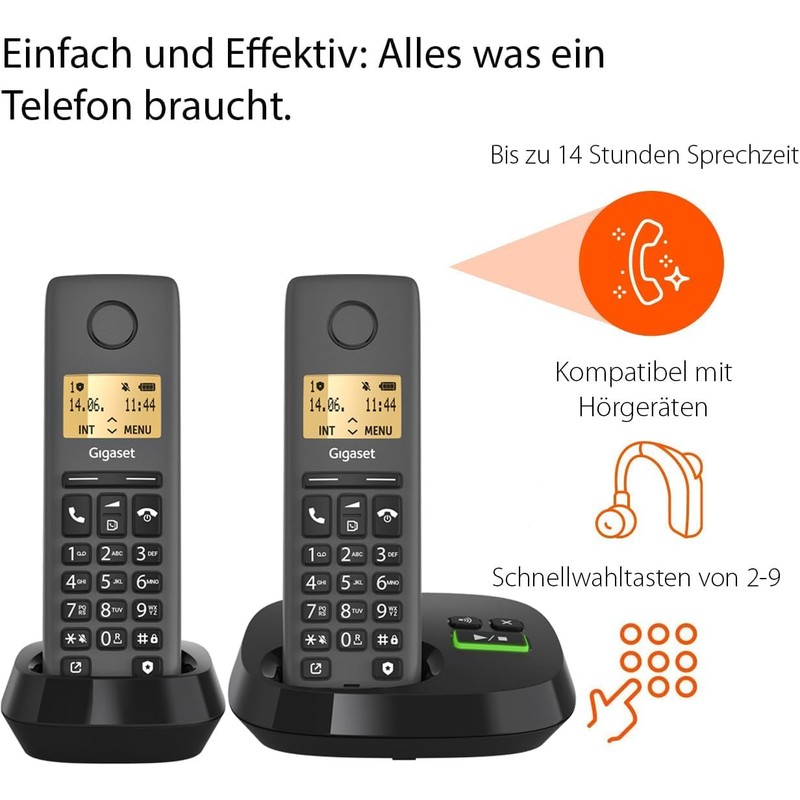 Gigaset Pure 120A Duo - 2 Cordless Telephones with Answering Machine - ECO DECT - Call Protection - Illuminated Display - Hearing Aid Compatible, Anthracite Black [Compatible in DE, IT, FR, NL, BE,