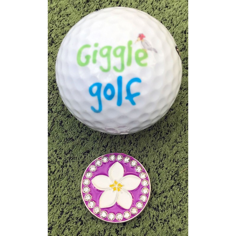 Giggle Golf Bling Plumeria Golf Ball Marker with A Standard Hat Clip