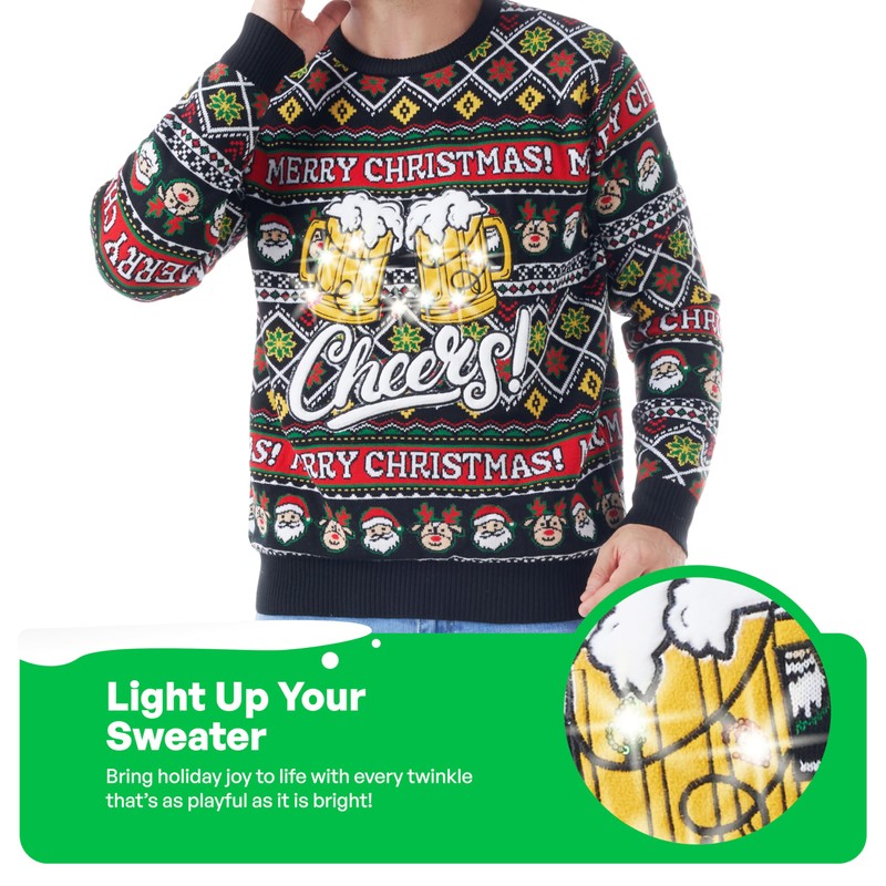 - Unique and Festive: The Giggling Getup light up christmas sweater for men is a one-of-a-kind ugly Christmas sweater that is sure to catch everyone's attention at parties. When you activate the light button, the lights on the funny ugly Christmas sweaters for men start twinkling. This magnificent creation is guaranteed to make your friends and family burst into laughter. Put on these fabulous men ugly Christmas holiday sweaters to celebrate the festive atmosphere!