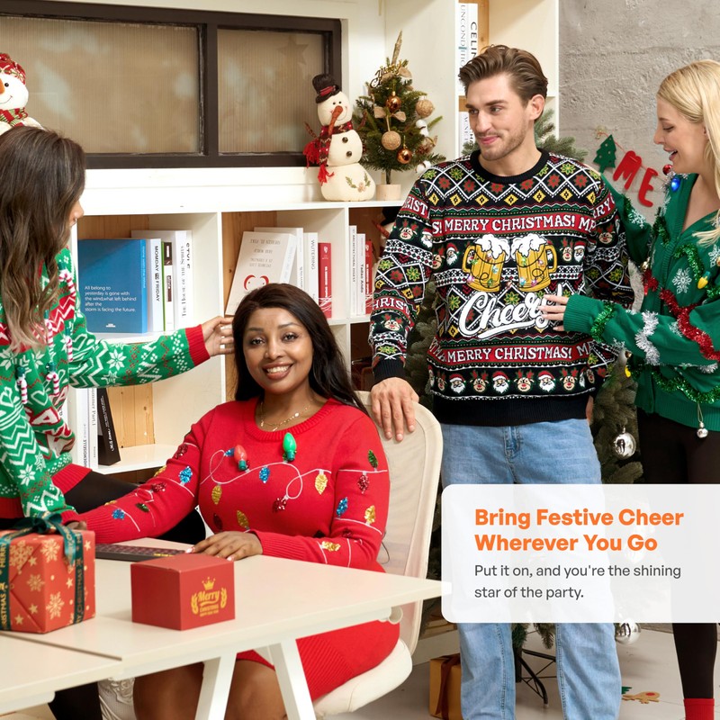 Unique and Festive: The Giggling Getup light up christmas sweater for men is a one-of-a-kind ugly Christmas sweater that is sure to catch everyone's attention at parties. When you activate the light button, the lights on the funny ugly Christmas sweaters for men start twinkling. This magnificent creation is guaranteed to make your friends and family burst into laughter. Put on these fabulous men ugly Christmas holiday sweaters to celebrate the festive atmosphere!