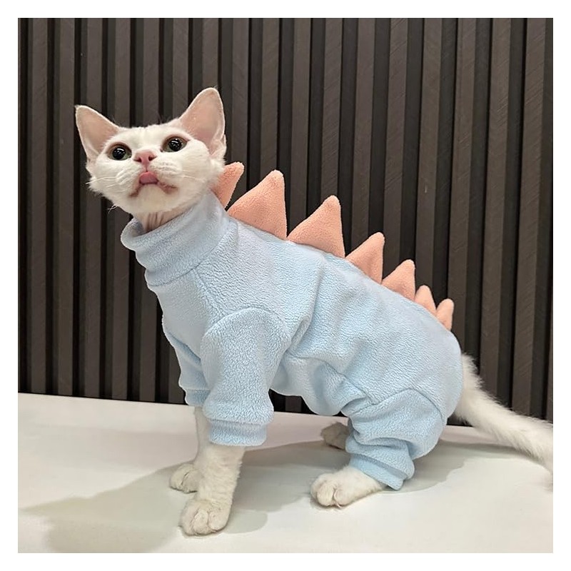 - Cozy Outfit: This adorable dinosaur costume is designed to keep your hairless cat warm and comfortable during colder months.